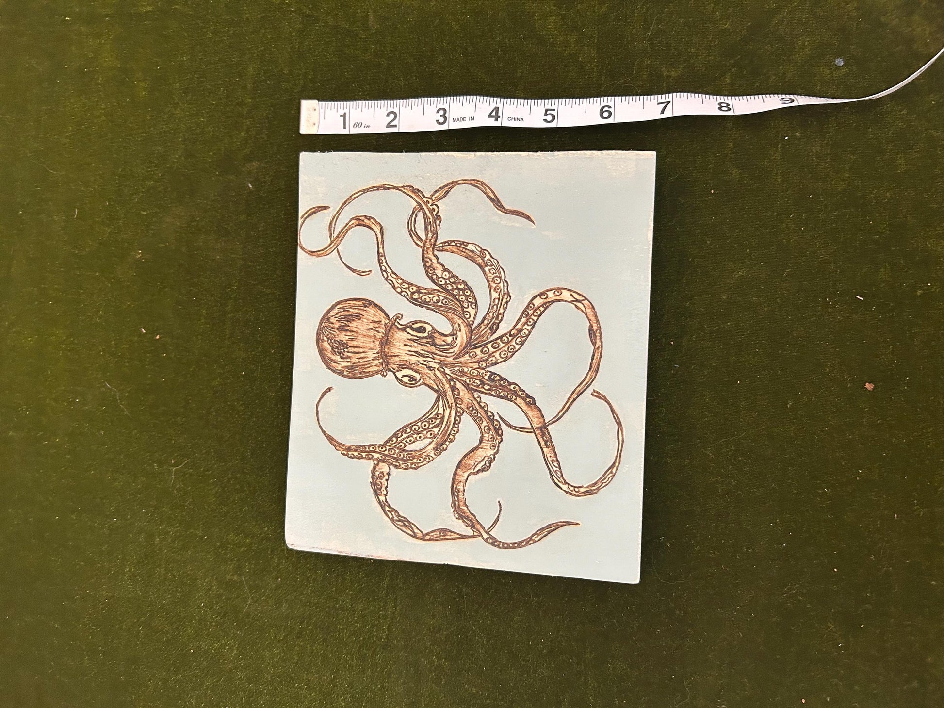 Coastal Beach Themed hand-burned Pyrography Octopus